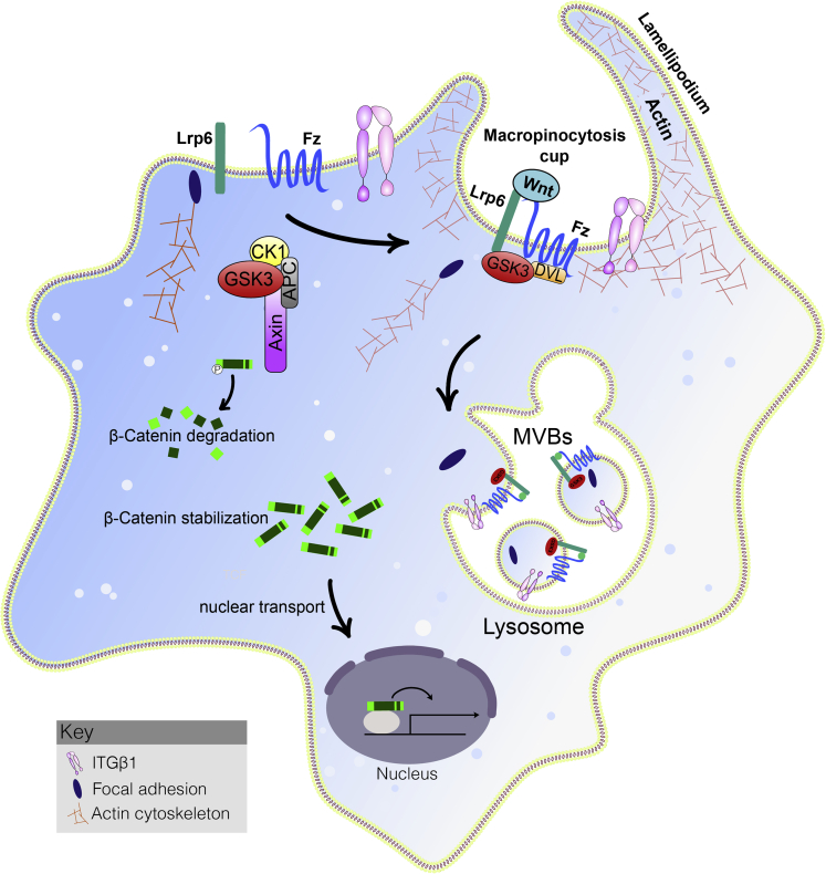 Canonical Wnt signaling induces focal adhesion and Integrin beta-1 endocytosis.