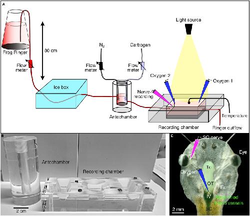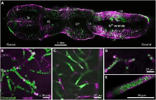 Transcardial injection and vascular distribution of microalgae in Xenopus laevis as means to supply the brain with photosynthetic oxygen.
