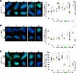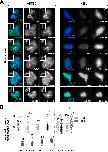 Figure 1—figure supplement 3. Condensation parameters.(A–D) Scatter plots of the percentage of pixels below a threshold of 35% of image maximum fluorescence intensity (the condensation parameter), for indicated conditions in Figure 1 and Figure 1—figure supplement 1. Error bars represent SD, and the mean values are indicated. n = 20 structures for each condition. Two biological replicates were performed, quantified structures are from a single experiment. |