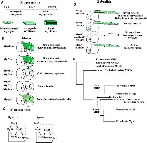 Tajbakhsh, Redefining the genetic hierarchies controlling skeletal myogenesis: Pax-3 and Myf-5 act upstream of MyoD. 1997, Pubmed