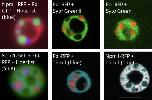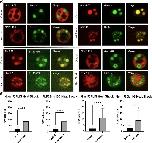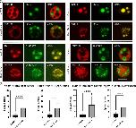 Figure 4. Nucleolar proteins after heat shock. Oocytes were heat shocked at 37°C for 1 h (controls were left at 13°C) in OCM for 1 h. (a) Representative images of nucleoli expressing fluorescently labeled proteins after heat shock treatment. RFP-fused proteins are shown in the first column of, GFP-fused proteins are shown in the second column, the merged images are shown in the third column. All images are of unfixed samples. Scale bar = 10 μm. (b) Graphical representation of a dataset of heat shock treatments showing the number of punctate spots per nucleolus from oocytes treated at 13°C (control) or 37°C (heat shock) for 1 h as represented by the dense fibrillar component localization protein indicated in either red or green. PS = punctate spots, which are partial dense fibrillar components. Each experiment was repeated three times, all producing significant changes between untreated and heat shocked nucleoli (pâ<â.05). Scale bar = 10 μm |