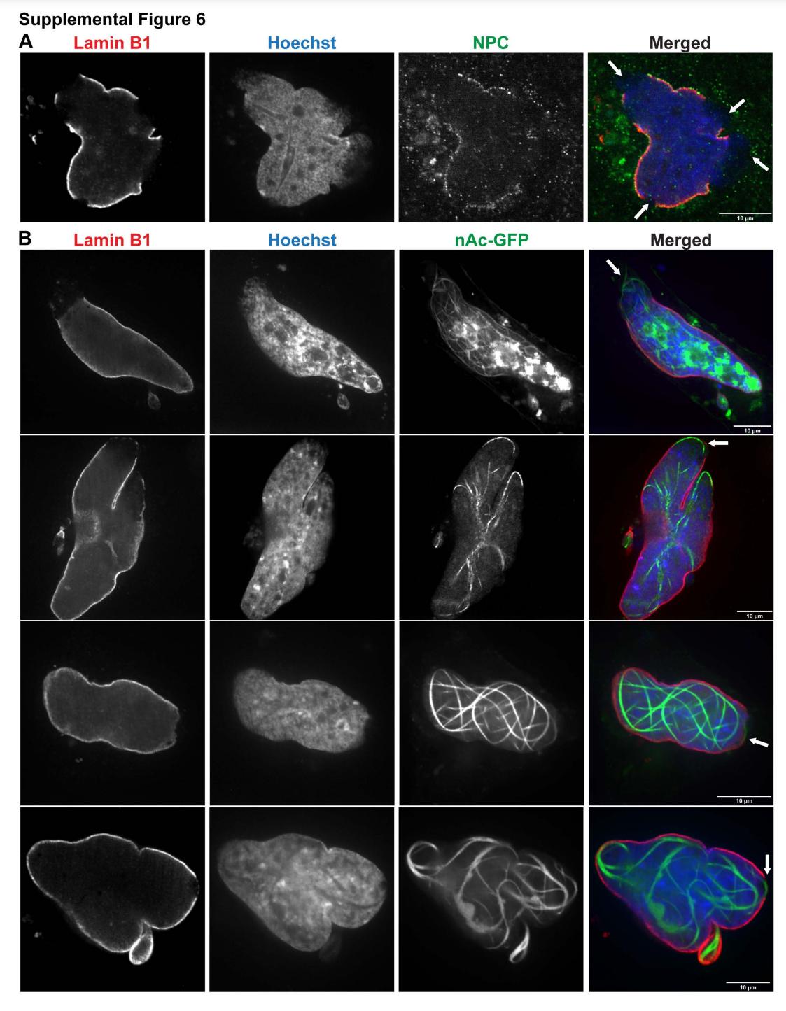 Wesolowska, Actin assembly ruptures the nuclear envelope by prying the lamina away from nuclear pores and nuclear membranes in starfish oocytes. 2020, Pubmed