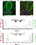 Figure 3. Intranuclear F-actin is enriched at the nuclear rim in bilobed nuclei. (A,B) Bilobed nuclei formed in F-actin-intact Xenopus egg extracts were imaged with mAb414 (NPCs, red), LifeActâGFP (F-actin, green) and Hoechst 33342 (DNA, blue) using confocal microscopy. Intensity line scans (dotted white lines) were used to determine where F-actin localizes relative to the NE, determined by NPC staining. Representative nuclei in which both F-actin peaks are intranuclear with respect to the NPC peaks (A) and in which one actin peak is intranuclear with respect to the NPC peak and the other actin peak colocalizes with the NPC peak (B) are shown. (C) Intensity measurements for the line scan shown in A. (D) Intensity measurements for the line scan shown in B. In total, 65 nuclei were analyzed as shown in C and D from two independent experiments. a.u., arbitrary units. |