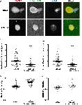 Figure 2. The nuclear envelope is structurally heterogeneous in bilobed nuclei. (A) After 90â min of nuclear assembly in F-actin-intact extracts, nuclei were stained with mAb414 (to label NPCs), LifeActâGFP (F-actin) and Hoechst 33342 (DNA) and imaged by confocal microscopy. In some cases, F-actin was labeled with Alexa Fluor 488 phalloidin. A bilobed nucleus is shown (representative of four experiments). (B) Nuclear cross-sectional area was quantified based on F-actin staining for the lobes with and without Hoechst 33342-stained DNA (n=113 nuclei, five independent experiments) using widefield microscopy. (C) Total nuclear F-actin and F-actin localized to the nuclear rim were quantified (n=113 nuclei, five independent experiments) using widefield microscopy, in each case normalized to the lobe without Hoechst 33342-stained DNA. (D) NPC intensity in the two lobes was quantified based on mAb414 staining (n=85 nuclei, four independent experiments) using widefield microscopy. To quantify Lamin B3 intensity in the two lobes, extracts were supplemented with GFPâLamin B3 and imaging performed by confocal microscopy (n=54 nuclei). In both cases, intensity values were normalized to the lobe without Hoechst 33342-stained DNA. Mean values and 95% c.i. error bars are shown. Nonparametric MannâWhitney tests were performed, showing statistical significance relative to the lobe without Hoechst 33342-stained DNA. a.u., arbitrary units. ****Pâ¤0.0001. |