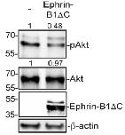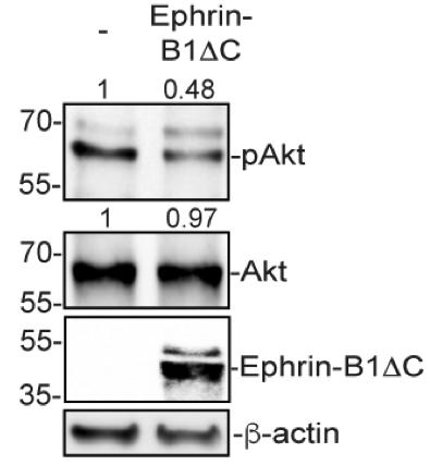 Figure S8 Overexpression of ephrin-B1DC in SW620 cells inhibits Akt activity. SW620 cells were transfected with an empty vector or a plasmid encoding HA-tagged ephrin-B1DC, and western blotting was carried out for cell lysates using the indicated antibodies (anti-HA for ephrin-B1DC). |