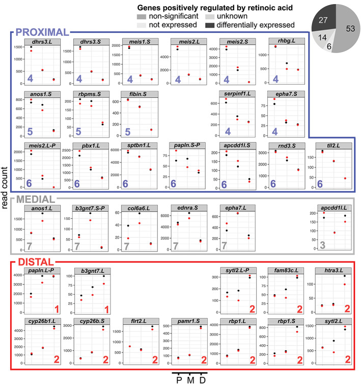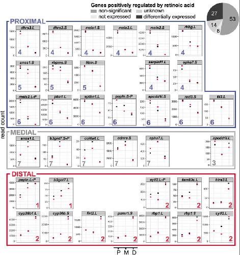 Gene expression analysis of the Xenopus laevis early limb bud proximodistal axis.