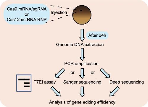 Figure 1. Flow chart of CRISPR Cas9 or LbCas12a disruption efficiency detection in X. tropicalis. |