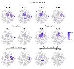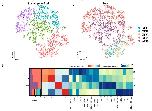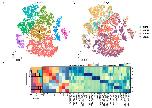 Supplementary Figure 5. [top 6 panels] t-SNE analysis of XCL tissues collected from adult Xenopus. t- SNE maps of single-cell data from bladder, eye, heart, intestine, kidney, muscle, ovary, pancreas, skin, spleen, stomach and testis. Cells are colored by cell-type cluster. |