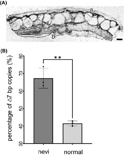 Fig. 6. Loss of heterozygosity occurred in dysplastic nevus of a tp53