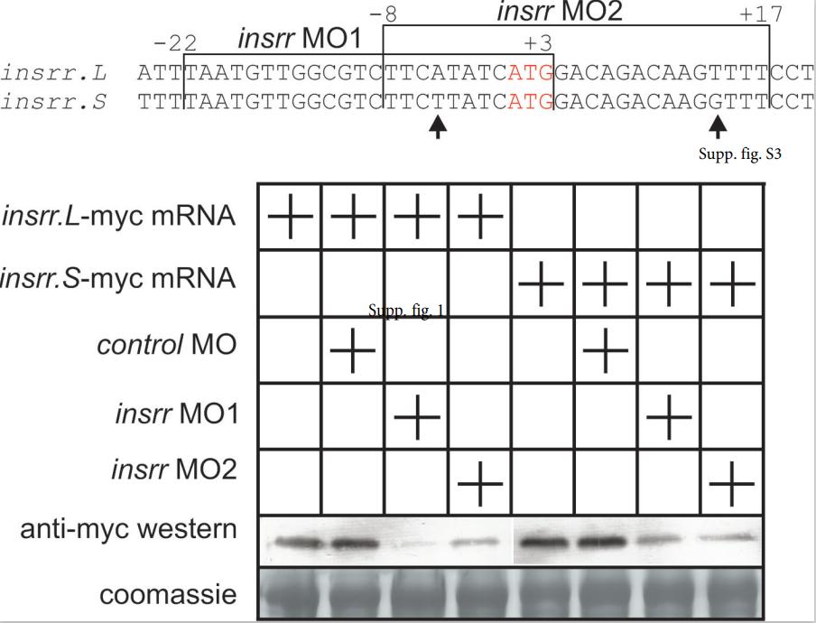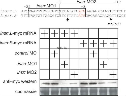 Supplement Figure S3. Analysis of MO specificity using myc-tagged fragments of xIRR cDNA. The obtained cDNA fragments were sub-cloned into pCS2-twsg1-myc plasmid instead of twsg1
