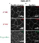 Figure 5. Microinjecting or bathing embryos in dye can label Halo-ZO-1 in vivo(A) Images of Xenopus embryos expressing Halo-ZO-1 (100 pg) labeled via dye microinjection with Janelia Fluor 646 HaloTag (20 μM), Janelia Fluor 549 HaloTag (5 μM), or Oregon Green HaloTag (5 μM).(B) Images of Xenopus embryos expressing Halo-ZO-1 (100 pg) labeled via dye bath with Janelia Fluor 646 HaloTag (1.3 μM), Janelia Fluor 549 HaloTag (1.3 μM), and Oregon Green HaloTag (3.3 μM).Scale Bars: 20 μm. |