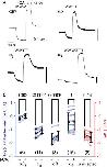 Figure 5. ENaC regulation by t-CA is voltage-dependent. A, oocytes expressing α, β, and γ ENaC subunits were bathed in a 110 mM Na+ solution supplemented with t-CA or amiloride as indicated. After 60 s for each t-CA dose, or 20 s for amiloride, currents were recorded while varying voltage in 20 mV steps for 4 s, as shown in the representative experiment. Steady-state currents at each voltage (recorded at 3.8 s) were subsequently analysed. B, the amiloride-sensitive I–V curve from the representative experiment is plotted for each t-CA dose, with an inset highlighting greater relative stimulation at less negative potentials. C, the relative t-CA dose–response for each voltage is plotted and was determined as ∆I = IX/I0 – 1, where I0 and IX are the amiloride-sensitive currents at baseline and a given t-CA dose, respectively. Data shown are means (SD), n = 13 oocytes. Individual points are shown in panel D. D–E, the t-CA dose–response data were replotted as a function of voltage, with individual data points in D and mean values in E. Linear regression was performed for each t-CA dose (D), and gave R2 values of 0.19 for 30 μM t-CA (P = 0.38), 0.98 for 100 μM t-CA (P = 0.0002) and 0.99 for both 300 and 1000 μM t-CA (P < 0.0001). F, relative ∆I vs voltage data were fit to various models of regulation. The simplest model considered (Model A, dashed lines in panel E) had three states, a closed state (C), an open state (O), and an open state with the bile acid bound at one site (O-B). Equilibrium constants between these states are Ko = [O]/[C] and K1 = [O][B]/[O-B], and K1 was permitted to have voltage-dependence according to K1V = K1·ezFδV/RT. Additional binding sites were defined analogously. Models A, B and C are nested within Model D by setting the indicated binding constant(s) to ∞. The fit to the best model (Model D, solid lines in panel E) is shown. [Colour figure can be viewed at wileyonlinelibrary.com]