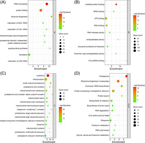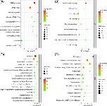 Figure 4. Gene Ontology (GO) analysis of T3-upregulated genes. Bubble plots of enriched categories of T3-upregulated genes for Biological Processes (BP) (A), molecular function (MF) (B), cellular component (CC) (C) and KEGG pathway analysis (D). Color represents the −log10 (P-value) and the size of the bubble represent the number of genes for each category. GO and KEGG pathways analysis were performed with DAVID resources and plotted using SRplot