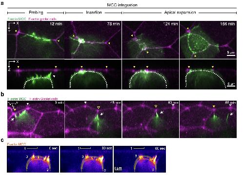 Fig. 5: MCCs remodel the overlying epithelium to enable cell integration.