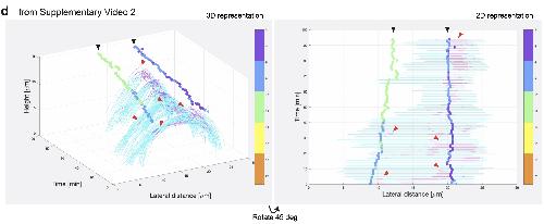 Supplementary Fig. 1 Filopodia dynamics during the probing phase of MCC integration. [continued] d, Representation of different modes of visualization of filopodia activity (stills adapted from Supplementary Video 2). F-actin filopodia extended by a single MCC are labeled in magenta while the MCC leading-edge is labeled in cyan. The overlying vertices are represented by the vertical tracks marked by black arrowheads, color-coded for the distance between the MCC tip and the left or right vertex during the probing phase. Lateral distance in μm describes the distance migrated in XY, whereas Height in μm describes the distance migrated in the axial direction. Red arrowheads mark filopodia-vertex interactions. |