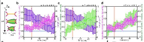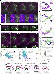 Supplementary Fig. 8 Myosin II is recruited to the leading edge of MCCs during probing and junction remodeling. a, Orthogonal (XZ) projections of myosin II recruitment to the MCC leading edge during integration. MCC is labeled with α-tubulin::LifeAct-RFP (pseudo colored green in a composite image, pseudo colored in gray as a single channel) and myosin II is labeled with myosin intrabody SF9-3xGFP (pseudo colored magenta in the composite image and pseudo colored in fire as a single channel). Scale bar: 5 μm. t=0 marks the last tracked frame during integration. b, Normalized myosin-II intensity (magenta) and normalized MCC F-actin intensity (green) at the leading edge of integrating MCC. (Also see Fig. 5b) c, Image sequence depicting myosin recruitment in MCC during junction remodeling. White arrowheads depict myosin accumulation. MCC is labeled with α-tubulin::LifeAct-RFP (pseudo colored green in a composite image, pseudo colored in gray as a single channel) and myosin II is labeled with myosin intrabody SF9-3xGFP (pseudo colored magenta in the composite image and pseudo colored in fire as a single channel). d, Normalized myosin II intensity (magenta) and normalized MCC F-actin intensity (green) at the leading edge of inserting MCC. e, Average junction length for control and CAMYPT-overexpressing MCCs after MCCs reached the overlying junctions, t=0 (nWT= 12 junctions, nCAMYPT = 13 junctions, N=5 experiments). Data show mean ± SEM. |