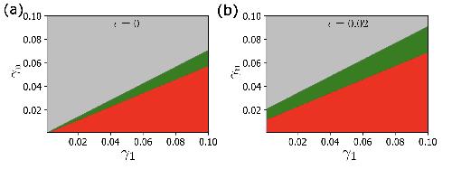 Supplementary Figure 13. Stability diagram for the intercalation at 3-fold and 4-fold vertices. Gray: neither three-fold nor four-fold allows a cell intercalation. Green: Only four-fold vertices allow cell intercalation. Red: Both three-fold and four-fold vertices allow for cell intercalation. The diagram is given for both Infinitesimal size (a) and finite size of inserting cells (b). (see Supplementary Note 1) |