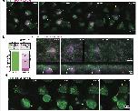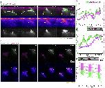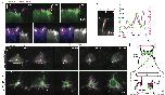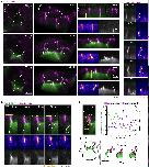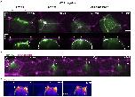 Integrating MCCs express F-actin marker (LifeAct, pseudo-colored in green) under MCC-specific α-tubulin promoter while overlying goblet cells express F-actin marker (Utrophin-RFP, pseudo-colored in magenta) under goblet cell-specific nectin promoter. a, Snapshots of the different steps of the MCC integration process: probing (when MCCs move into the superficial layer), insertion (when MCCs are stably positioned at an epithelial vertex) and apical expansion (when MCCs join the tissue by expanding their apical domain). Yellow arrowheads mark epithelial vertices. In the corresponding orthogonal (XZ) projections, yellow arrowheads mark epithelial vertices and the white arrow indicates a F-actin filopodium. White dotted lines outline the cortex of the integrating MCC. Scale bars: 5 μm. b, 3D rendering of integrating MCC interacting with different vertices (filopodia marked by arrowheads)(MCC from Fig. 1b-d and Supplementary Video 1). c, Representation of filopodia dynamics quantification. Different regions of interest (ROIs) corresponding to the background (1), cortex (2) and filopodia (3) are drawn and used to extract F-actin intensities (See Methods). Scale bar: 5 μm. |