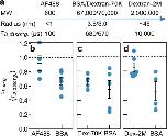 Supplementary Figure 1: Localization error in SPT and comparison with FCS. a, Data from Fig. 1d overlaid with MSD of immobilized microspheres on glass. This shows that the localization error was below 0.01 µm2, which was lower than the mobile particles in extracts. b, Data from Fig. 1d overlaid with the dextran-2M FCS data from Fig. 4. The SPT data was analyzed for 100-nm microspheres and the FCS data was obtained for dextran-2M (diameter of ~90 nm). Error bars, SEM (standard error of the mean). |