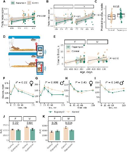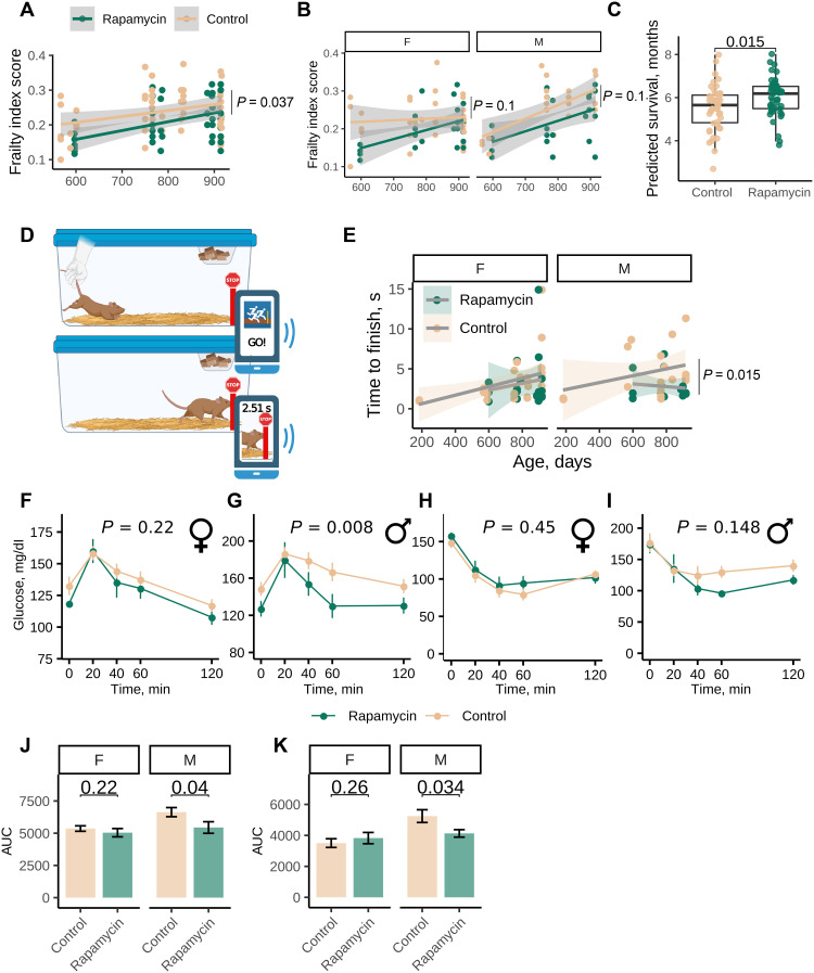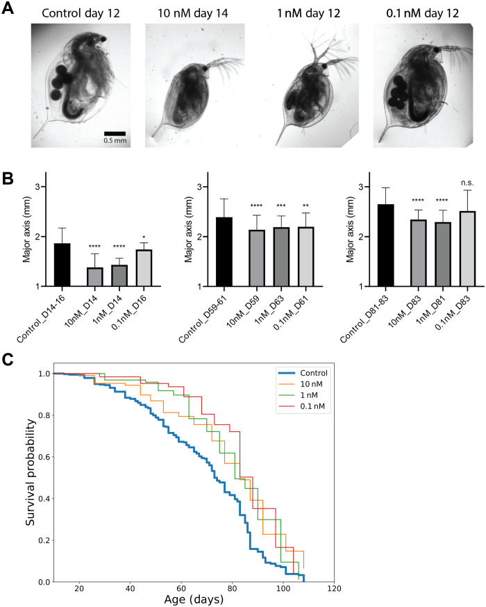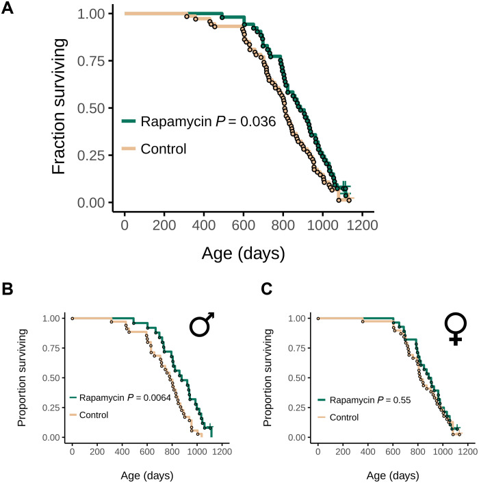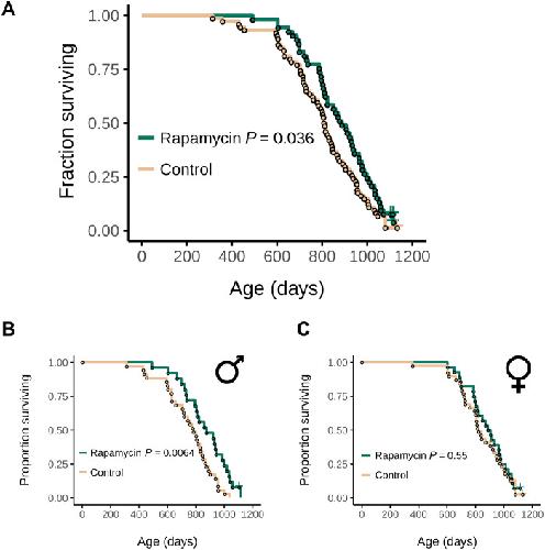 Rapamycin treatment during development extends life span and health span of male mice and Daphnia magna.
