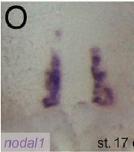 nodal1 (nodal homolog 1) gene expression in X. laevis embryo, NF stage 17, in the somitic domains of the LRO (Left Right Organizer) of the gastrocoel roof plate. |