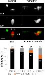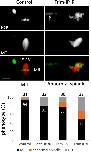 FIGURE 2:. IP3R depletion inhibited first polar body formation. Oocytes injected with mRNAs coding for RFP-tubulin (red) and eGFP-H2B (green) were further injected with GFP-Trim21 mRNA as indicated (Trim). Twenty-four (24) hours after Trim21 mRNA injection, oocytes were injected with anti-IP3R antibodies or anti-GTS antibodies as indicated. Four hours after antibody injection, all oocytes were incubated with progesterone overnight before being examined by confocal microscopy. Oocytes were recorded as metaphase II (MII, with a first polar body and a bipolar metaphase II spindle; scale bar = 20 µm), abnormal spindle (no polar body; arrow depicts oocyte cortex), or undetectable (UD) (no chromosomes seen within the depth of the confocal system, not shown). The graph summaries five independent experiments depicting the proportions of oocytes exhibiting the three phenotypes. Percentage of MII oocytes in each group is indicated within the bar, with total oocyte number indicated above.