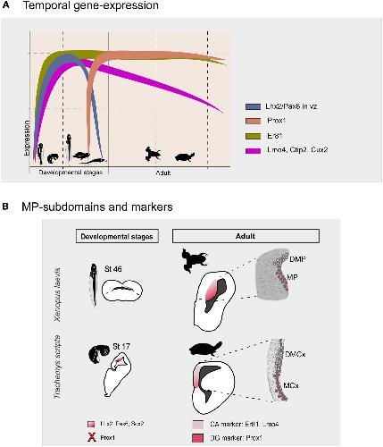 Development of subdomains in the medial pallium of Xenopus laevis and Trachemys scripta: Insights into the anamniote-amniote transition.