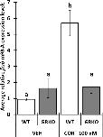 (C). Bars represent mean mRNA levels relative to the housekeeping gene rpl8 and normalized to a vehicle control sample. n = 10 tail samples per treatment. Error bars represent SE. Letters indicate significant groups, p < 0.05. |