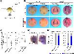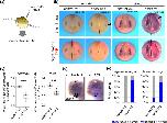 Figure 2. Overexpression of ndst1 expands the neural crest region (a) Schematic view of the injection. 25 pg ndst1.L mRNA with a tracer, 100 pg lacZ mRNA, were injected into two blastomeres at the 4-cell stage (slightly lateral from the midline as indicated), and the specimens were fixed at the neurula stage (st. 17). The light brown cells are the dorsal blastomere. The dark ones are the ventralblastomere. (b and c) Expression pattern of foxd3, slug, and sox3 in ndst1-overexpressed embryos. lacZ injected cells (a tracer) are colored red (“injected side” in the figures). ndst1 overexpression expands the neuroectodermal-gene expressed region as quantified in (c). Arrowheads indicate the expanded region. Dashed line indicates the midline of the embryo. Differences in expression areas were quantified by their area or width from the midline for the injected and uninjected sides. Statistical significance was analyzed by Student's t-test (p = 1.1 × 10−6 [foxd3; n = 28 (uninjected) vs. 27 (injected)], 6.1 × 10−5 [slug; n = 20 (uninjected) vs. 15 (injected)], 0.014 [sox3; n = 20 (uninjected) vs. 12 (injected)]). *p < 0.05, ***p < 0.005. Scale bar = 500 μm.