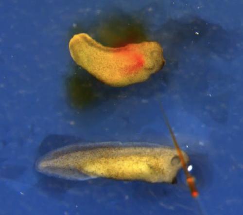 Liquid flow in double morphant tadpole. |