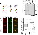 Figure 4. RanGTP releases importin inhibition of MT binding. A, GFP or GFP-Haus81–150 was bound to α-GFP magnetic resin and incubated with importin-αβ in the presence or the absence of a 10-fold excess of RanQ69L. Both importin-αβ binding and augmin loading were assessed by Coomassie staining and the intensity of bands at the indicated sizes. B, in vitro localization of GST-GFP-Haus81–150 binding to GMPCPP-stabilized MT seeds, as visualized by TIRF microscopy (top row). Addition of importin-αβ heterodimer inhibits binding of Haus8 to MTs (middle row), whereas addition of RanQ69L rescues MT binding of Haus8 (bottom row). Images belonging to the same experiment were contrast matched. To compare Haus8 fluorescence intensity across experiments, the intensity was normalized with respect to the tubulin signal. This is quantified in C. C, boxplot of average GFP-Haus8 signal relative to the average tubulin signal, where each marker represents a single MT from the experiment shown in F. n corresponds to the total number of MTs. Center lines show the medians; box limits indicate the 25th and 75th percentiles as determined by R software; whiskers extend 1.5 times the interquartile range from the 25th and 75th percentiles. p Values were calculated from independent t tests. Scale bars correspond to 5 μm. GST, glutathione-S-transferase; MT, microtubule; TIRF, total internal reflection fluorescence. |