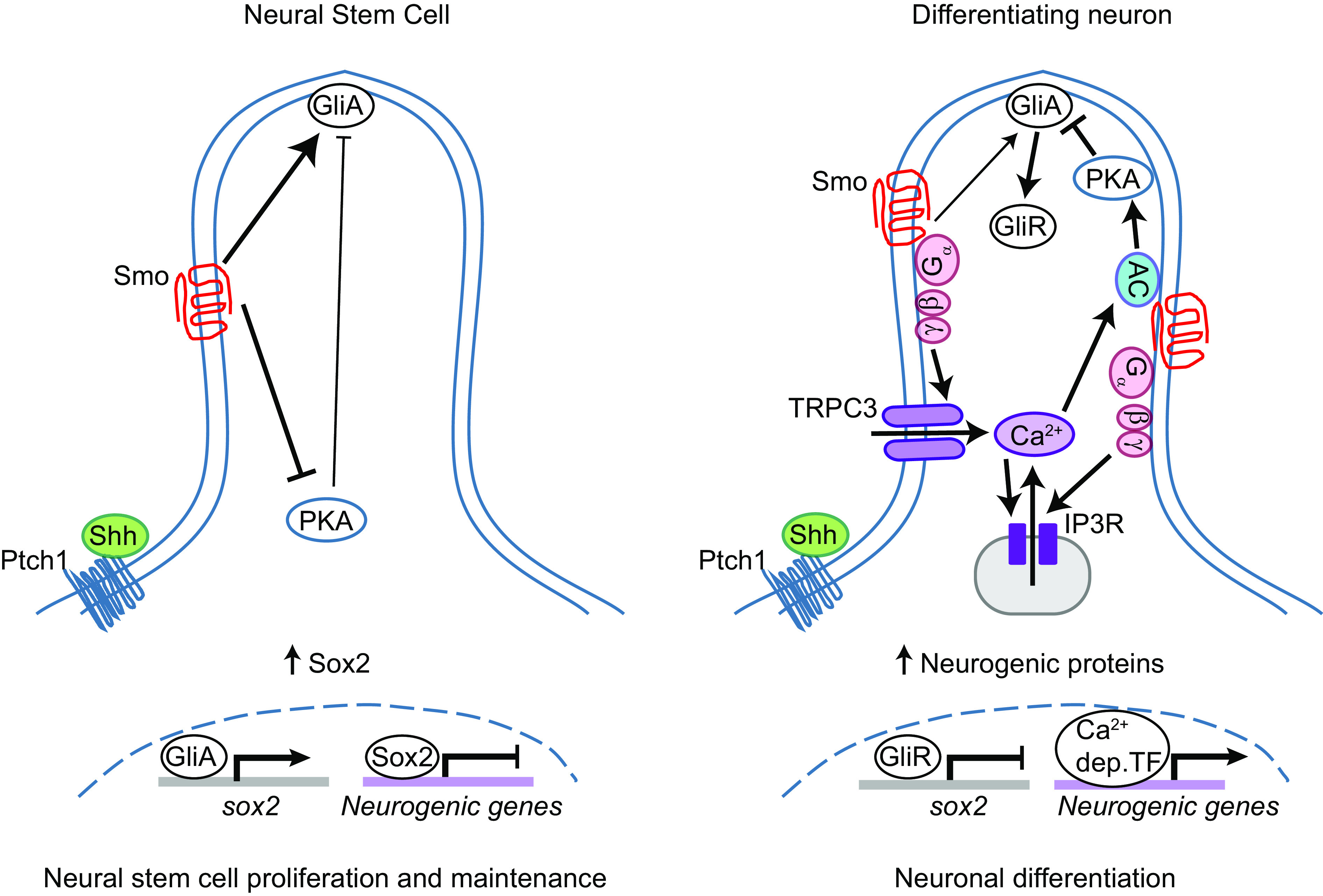 Calcium dynamics at the neural cell primary cilium regulate Hedgehog signaling-dependent neurogenesis in the embryonic neural tube.