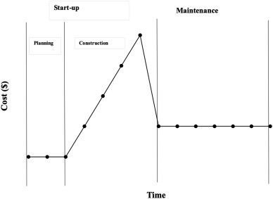 Fig. 6. Predicted cost trends across the extended lifecycle of amphibian genome resource banking infrastructure.