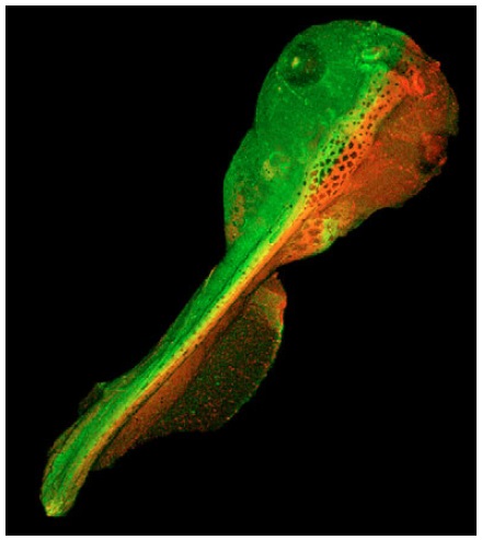 embryos reached stages 45-46 (~5 days). A dorsal view of a labeled