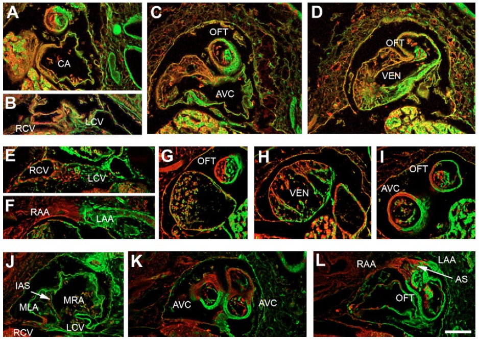 Fig. 10. LR lineage composition of the normal heart. A threedimensional