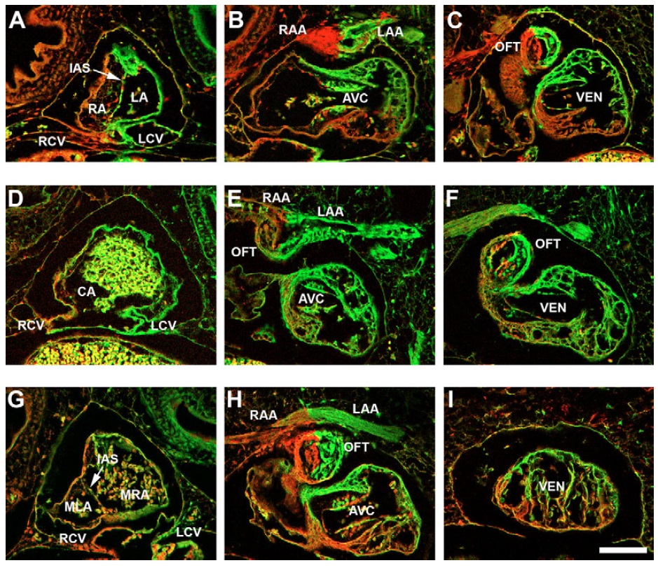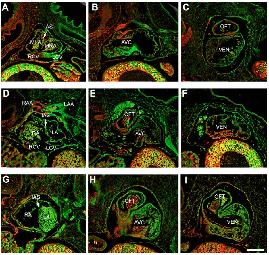 interatrial septum (IAS). The heart in D-F contains a