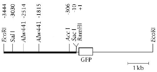 is shown as a solid bar and the green fluorescent protein (GFP)