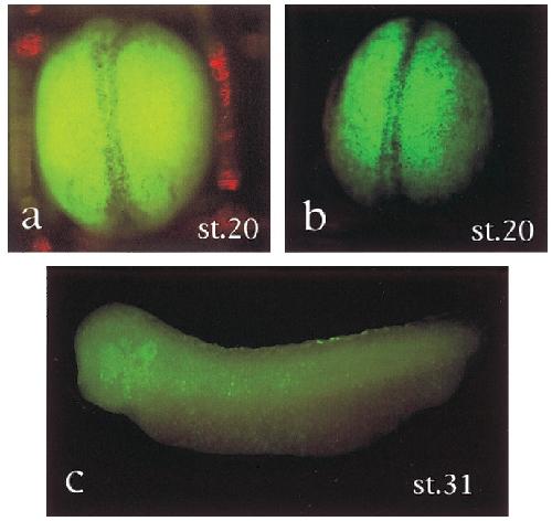 stage 20 (a) and in the dorsal body of the embryo at stage 31 (c)