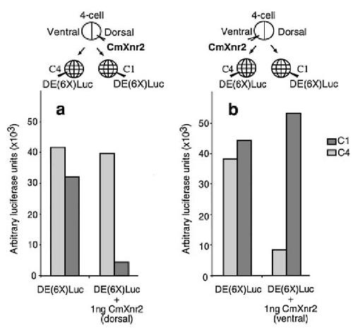 CmXnr2 mRNA was injected subequatorially into the two dorsal