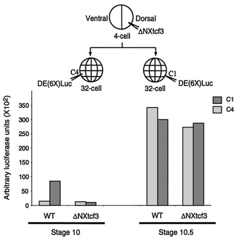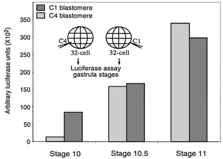 Luc into the C1 or C4 blastomere at the 32-cell stage and assayed