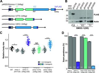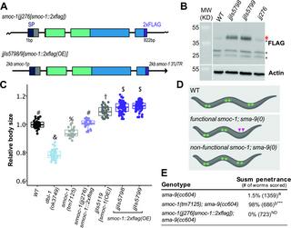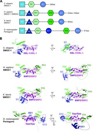 SMOC-1 interacts with both BMP and glypican to regulate BMP signaling in C. elegans.
