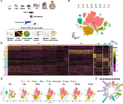 Single-cell sequencing reveals the evolution of immune molecules across multiple vertebrate species.