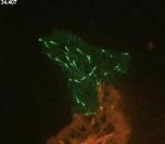 Still Movie 7. Microtubule plus-end dynamics at the leading edge of Trio morphant explants visualized by EB3-mCherry expression, plasma membrane is marked by GFP. |
