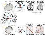 Supplementary Figure S4. Connectivity matrix can be interrogated to assess mouse functional connectivity between and within groups. (A) Edge (region to region correlation) strengths averaged for control (salmon) and cKO (sky blue) mice. There are no group differences the distribution of edge strengths between groups, inter or intra-hemisphere. Kurtosis and skewness were found to show no groupwise differences when compared both inter- and intra-hemisphere. (B) Connectivity between each brain region is shown, compared interhemisphere and intrahemisphere. The connectivity patterns of control mice are shown in the top right half of the matrix, and those of cKO mice are shown in the bottom left half of the matrix. (C) To identify differences between control and cKO connectivity patterns, difference matrices are computed between all pairs of mice. Both within the control and cKO groups, as well as comparisons between groups, all show a weak, but significant, correlation between distinguishing connectivity profiles. (D) We average the difference matrices, threshold the edges, and binarize to generate two networks which distinguish control from cKO mice. The two networks consist of either edges that show higher connectivity strength in control than cKO mice (Positive network), or lower connectivity strength in control than cKO mice (Negative network). n=12 for all experiments. |