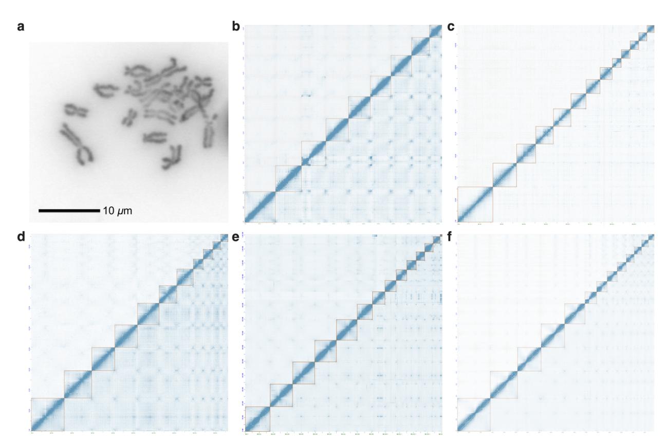 Frogs are an ecologically diverse and phylogenetically ancient group of anuran amphibians that include important vertebrate cell and developmental model systems, notably the genus Xenopus. Here we report a high-quality reference genome sequence for the western clawed frog, Xenopus tropicalis, along with draft chromosome-scale sequences of three distantly related emerging model frog species, Eleutherodactylus coqui, Engystomops pustulosus, and Hymenochirus boettgeri. Frog chromosomes have remained remarkably stable since the Mesozoic Era, with limited Robertsonian (i.e., arm-preserving) translocations and end-to-end fusions found among the smaller chromosomes. Conservation of synteny includes conservation of centromere locations, marked by centromeric tandem repeats associated with Cenp-a binding surrounded by pericentromeric LINE/L1 elements. This work explores the structure of chromosomes across frogs, using a dense meiotic linkage map for X. tropicalis and chromatin conformation capture (Hi-C) data for all species. Abundant satellite repeats occupy the unusually long (~20 megabase) terminal regions of each chromosome that coincide with high rates of recombination. Both embryonic and differentiated cells show reproducible associations of centromeric chromatin and of telomeres, reflecting a Rabl-like configuration. Our comparative analyses reveal 13 conserved ancestral anuran chromosomes from which contemporary frog genomes were constructed.