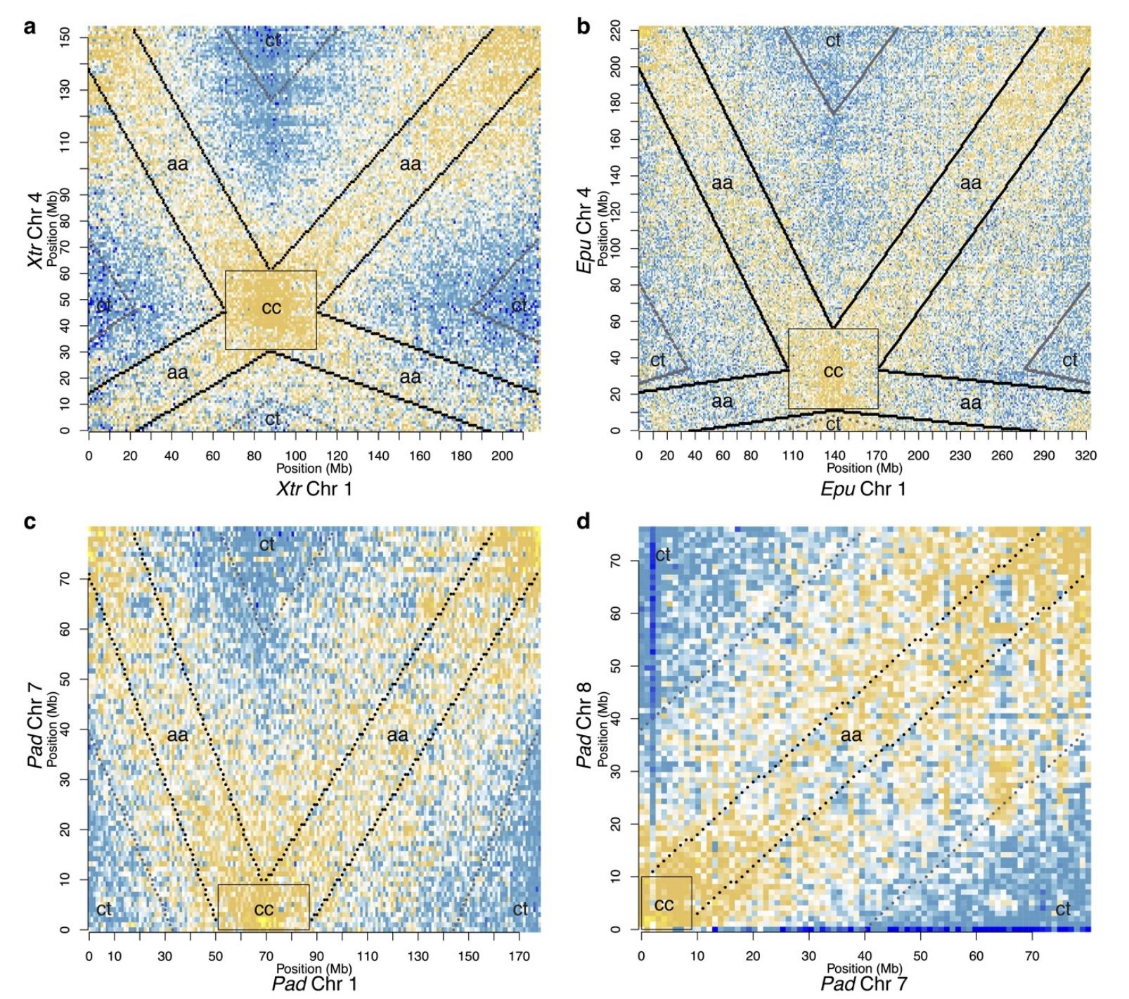 Conserved chromatin and repetitive patterns reveal slow genome evolution in frogs.