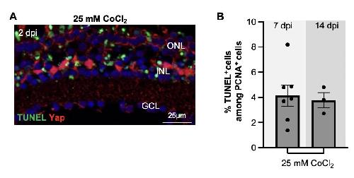 Yap at 2 dpi, following intraocular injection of 25 mM CoCl2. Cell nuclei are counterstained with