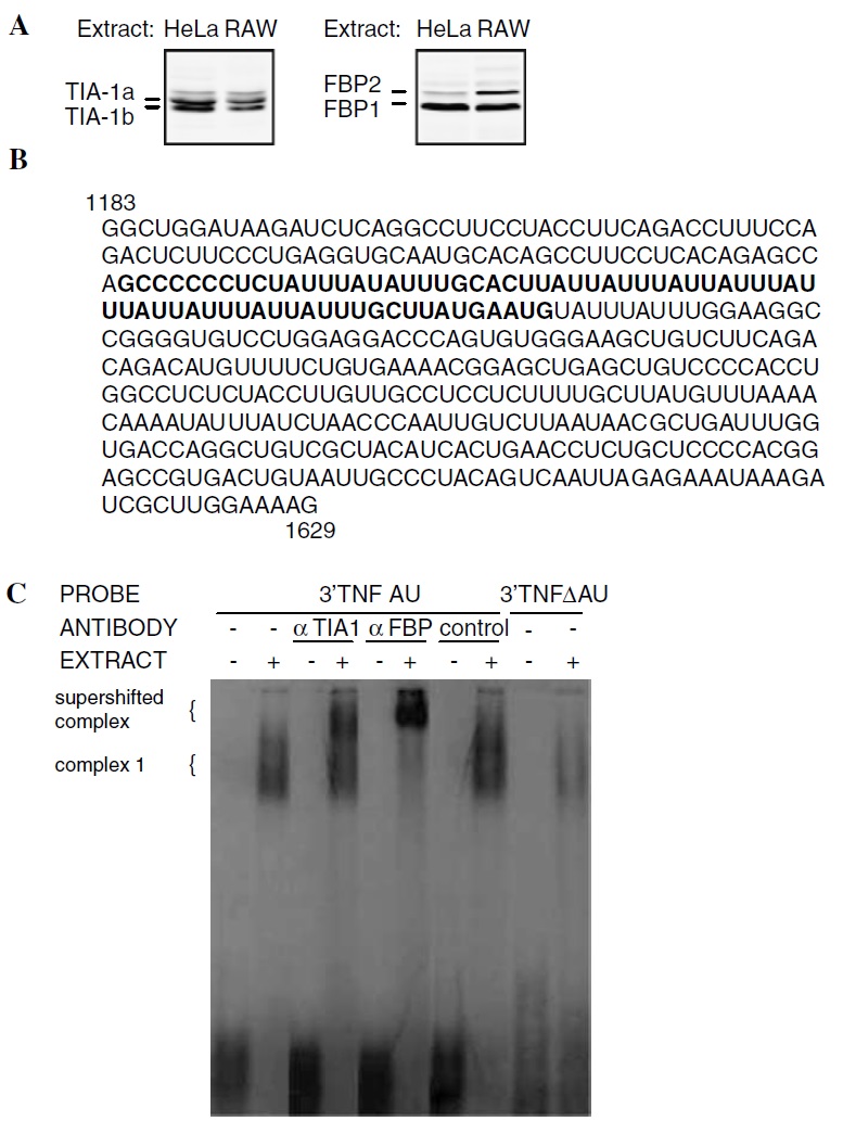 RAW264.7 macrophage cytosolic extracts. (B) Sequence of TNF AU