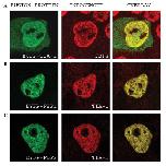 (A). The merged images show the partial co-localization of the proteins.