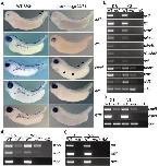 Fig. 4: The expression of crucial genes associated with melanophores, xanthophores, and granular glands was reduced or lost in mitf/ Xenopus tropicalis. a Whole-mount in situ hybridization analysis of stage 33/34 Xenopus tropicalis embryos demonstrated a reduction or absence of mRNA hybridization signals in mitf/ embryos compared to the WT. The black arrows indicated some weaker mRNA hybridization signals. At least five embryos were used for in situ hybridization of each gene in every genotype embryo. be Representative results of RT-PCR analysis for several melanophores-related genes, including mitf, tyr, pmel, mlana, ednrb1, slc45a2, and dct, as well as xanthophores-related genes, trpm1, pax3, and gid2, were presented in b. The expression of aquaporin-related genes, such as aqp5 and aqp8, as well as Ca2+-activated chloride channel anoctamin 1 (ano1), and antimicrobial peptides-related genes, including nmb and pgq, in the granular glands were displayed in c and d, respectively. Several hormone-related genes of granular glands, including trh, xt6l, and tph1, were also evaluated (e). The representative results of this analysis were presented in panels ce. odc was used as the RNA loading control and ce shared the RNA loading control in c. For RT-PCR analysis, each gene was subjected to three repetitions using three replicates of total RNA samples, while each total RNA sample was extracted from the skin of three individual frogs. The original data for the mentioned RT-PCR can be found in Supplementary Fig. 32 and Supplementary Fig. 33. Additionally, the original data for the RT-PCR in Supplementary Fig. 25 can be found in Supplementary Fig. 34. DS, dorsal skin; VS, ventral skin. The black scale bar in a is 0.5mm. |